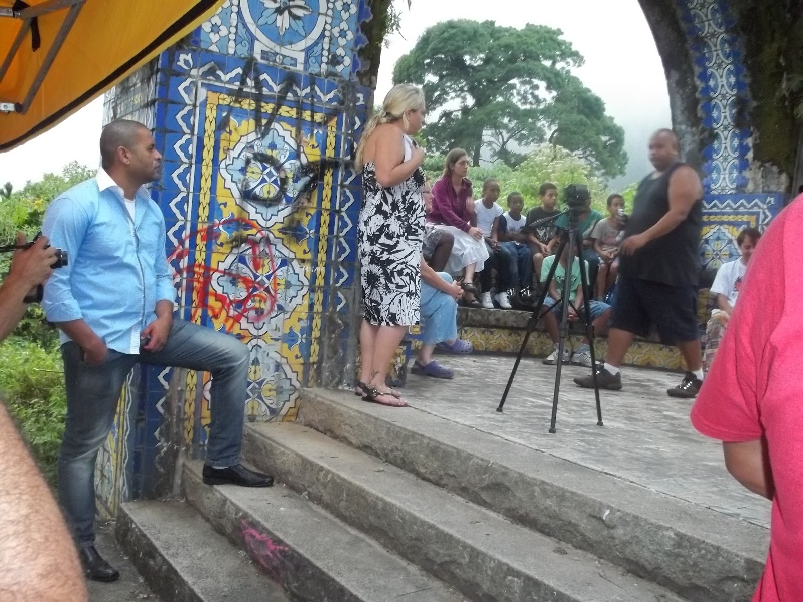 | Monica Botafogo contando uma das lendas retratada no Mirante da Granja |